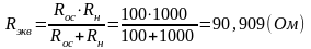 Сопротивление обратной связи Rос находим исходя из запланированного на выходной каскад коэффициента усиления, сопротивления генератора или другими словами выходного сопротивления предыдущего каскада и рассчитываем по следующей формуле [6]: