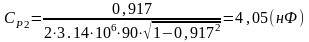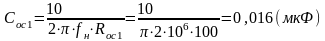 Для расчета емкостей обратной связи Сос1, Cос2, и Сос3 воспользуемся следующим соотношением: