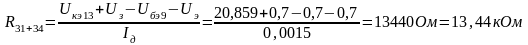Поэтому принимаем R31 = 1300 Ом = 1,3 кОм, R34 = 12000 Ом = 12 кОм