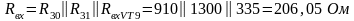 Входное сопротивление усилителя мощности Rвх=0,2646 кОм=264,6 Ом;