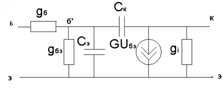Рисунок 4.1- Эквивалентная схема биполярного транзистора (схема Джиаколетто)