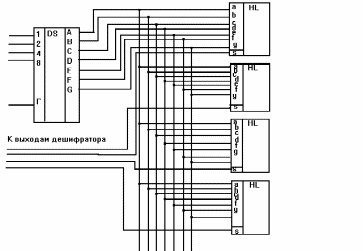обеспечивает динамическую индикацию 4-х десятичных цифр на