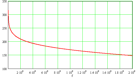 Рисунок 3.3 – Зависимость эффективности экранирования двухслойного экрана от частоты, дБ.