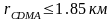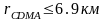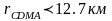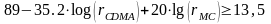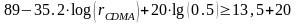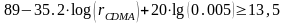 Минимально допустимый уровень сигнала, при котором обеспечивается приемлемое качество речи, в системе CDMA равен 5.5 дБ. Внутрисистемные помехи в системе CDMA поднимают минимально допустимый уровень сигнала на 8 дБ. Это значит, что расстояние между МС и БС системы CDMA, rCDMA, при котором уровень сигнала будет больше 5,5+8=13,5 дБ, находится из условия: