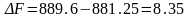 ΔF = 889,6 - 881,25 = 8,35 МГц.