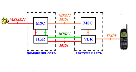 MSC пересылает в HLR номер (MSISDN) абонента. HLR, в свою очередь, обращается с запросом к VLR гостевой сети, в которой находится абонент. VLR выделяет один из имеющихся в ее распоряжении MSRN (Mobile Station Roaming Number - номер "блуждающей" мобильной станции). Идеология назначения MSRN очень напоминает динамическое присвоение адресов IP при коммутируемом доступе в Интернет через модем. HLR домашней сети получает от VLR присвоенный абоненту MSRN и, сопроводив его IMSI пользователя, передает коммутатору домашней сети. Заключительной стадией установления соединения является направление вызова, сопровождаемого IMSI и MSRN, коммутатору гостевой сети, который формирует специальный сигнал, передаваемый по PAGCH (PAGer CHannel - канал вызова) по всей LA, где находится абонент.