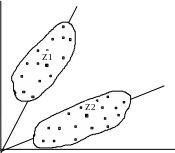 представляющую собой косинус угла, образованного векторами X и Z. Этой мерой целесообразно пользоваться, когда кластеры располагаются вдоль главных осей или растянуты вдоль лучей, направленных от начала координат.