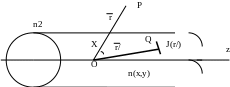 Для определения мощности излучения воспользуемся приближением свободного пространства, суть которого сводится к замене слабонаправляющего световода неограниченной однородной средой с показателем преломления оболочки n2 . В большинстве практических случаях излученная мощность достаточно точно описывается в рамках этого приближения.