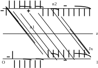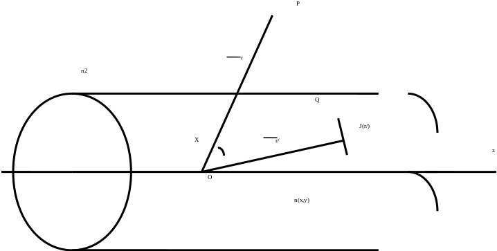 изменяется как (n1 - n2) в области нерегулярностей и равно нулю во всех остальных областях. Поскольку отклонения F(z) малы, можно предположить , что вынужденные токи сосредоточены в области границы сердцевины с оболочкой, поэтому имеем: