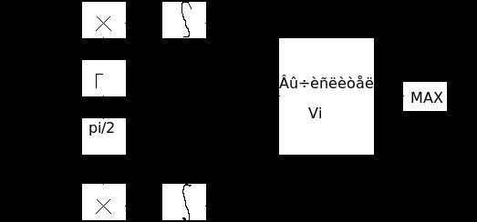 Схема содержит m=8 корреляторов и решающее устройство сравнения и выбора максимального из выходов корреляторов. Вопросы реального формирования опорных колебаний описаны в (7)Число опорных колебанийи соответственно корреляторов в демодуляторе сигналов с ФМ меньше, чем число вариантов фазы. Число опор многопозиционных ФМ сигналов может быть сведено к двум, если применить соответствующий вычислитель.
