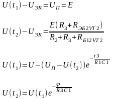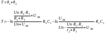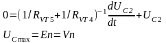 Решая эту систему получим выражение для амплитуды длительности импульса и периода через параметры схемы.