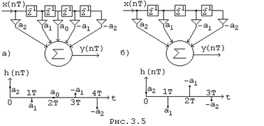 На рис. 3.5, а приведены схема и импульсная характеристика антисимметричного фильтра для случая N=5.