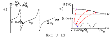 Нелинейная зависимость частотного преобразования (3.16) определяет как недостатки, так и достоинства метода билинейного преобразования. Недостаток в том, что наклонные участки частотной характеристики изменяют свой наклон тем больше, чем выше частота. Поэтому, например, линейная фаза после преобразования (3.16) становится нелинейной. Достоинство определяется отсутствием ошибок наложения при переходе АФ ® ЦФ, что позволяет получить высокие уровни ослабления в ПН при конструировании частотно-селективных фильтров.