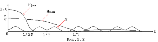 Неравномерность реальных частотных характеристик ЦАП и ФНЧ приводит к искажениям восстанавливаемого непрерывного сигнала. На рис. 5.2 показаны характерные особенности реальных АЧХ восстанавливающих устройств.