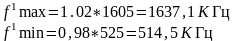 fmax= 1605 КГц ; fmin= 525 КГц (СВ)