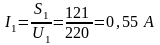 Напряжение первичной обмотки U1 =220 В.