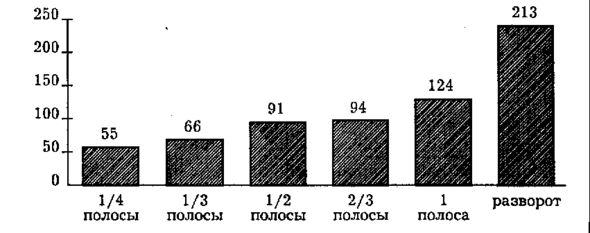 Эффективность воздействия рекламного обращения зависит и от формы представления информации. Вот, например, как влияют на восприятие цветность и размер рекламных объявлений в прессе (рис. 10, 11):