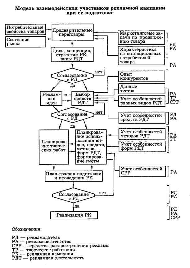 Модель взаимодействия участников рекламной кампании при ее подготовке представлена схемой на рис. 16