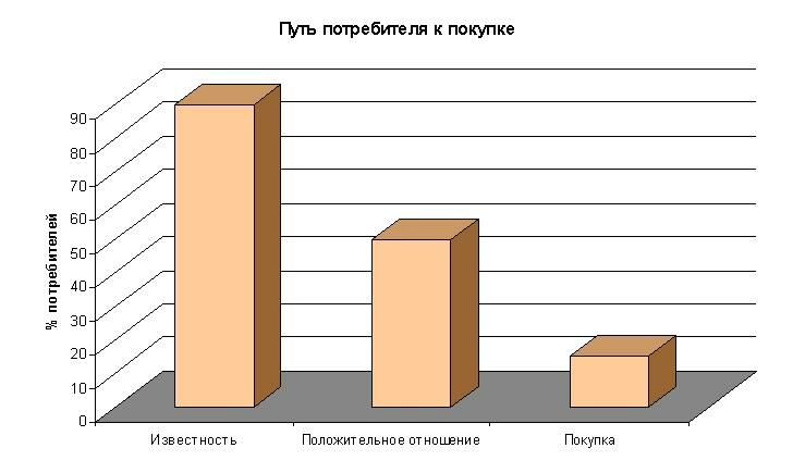 То есть иными словами, чтобы потребитель купил товар, он как минимум должен знать о его существовании. Это обязательное условие, однако недостаточное, поскольку потребитель также должен положительно относиться к рекламируемому бренду. Только при соблюдении этих двух условий вероятность покупки существует.