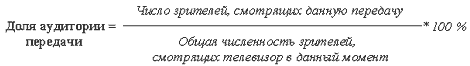Рейтинг = Доля аудитории передачи * Доля телезрителей в данный момент