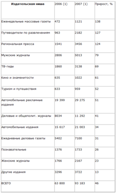 Увеличение объемов авторекламы в этих изданиях не означает снижения в специализированных журналах. В автожурналах общий объем изначально очень высок. Поэтому там прирост составил всего 34% . [22]