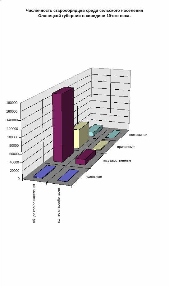 Я же придерживаюсь другой точки зрения. Я считаю, что старообрядчество - это идеология зажиточного крестьянства и зажиточного сословия городского населения - купцов, что могу доказать и наглядно убедить с помощью таблиц и диаграмм (см. приложения).