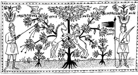 Мировое Древо Роспись с крышки сундука. Северная Двина. Конец XVII в.
