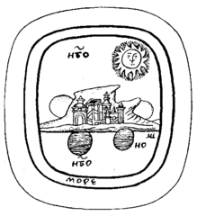 Миниатюра из русской рукописи "Космография Козьмы Индикоплова", изображающая движение Солнца по небу и по подземному, "ночному" морю"