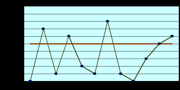 Уровни агрессивного поведения детей отображены на графике. Ось X – количество детей, ось Y – баллы. Дети с высоким уровнем агрессии попадают за границу 0,5 баллов.