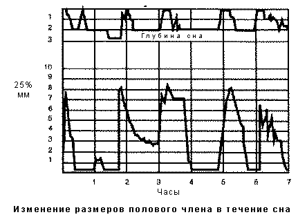 Существуют две стадии сна - со сновидениями и без них. Во время сновидений глазное яблоко быстро движется под веками. Это и есть так называемый REM (Rapid Eye Moyement sleep), сон, сопровождаемый быстрыми движениями глазного яблока, известный также под названием парадоксального сна. Этот вид сна начинается примерно через 90 минут после засыпания. Фаза REM продолжается в течение 27-30 минут, после чего сновидения прекращаются. Следующий цикл начинается через 72-100 минут. Далее циклы повторяются всю ночь. В начале парадоксального сна возникает эрекция, которая удерживается на протяжении данного цикла. Человек, разбуженный во время парадоксального сна, ясно помнит свои сны. У мужчин, воздерживающихся от половой жизни, а также у подростков эти сновидения могут иметь эротический характер. Эротические сны иногда могут быть и у мужчин, ведущих активную половую жизнь.