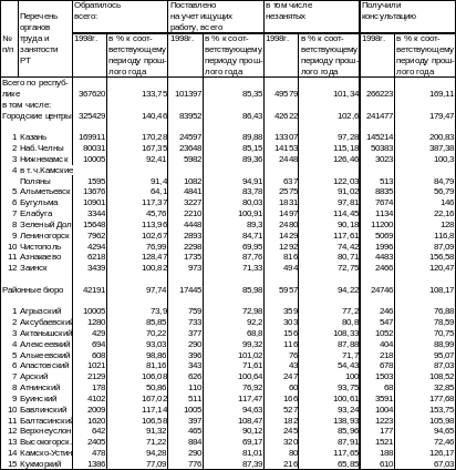 Обращаемость граждан в органы труда и занятости Республики Татарстан за январь-ноябрь 1998 года представлена в таблице 1.