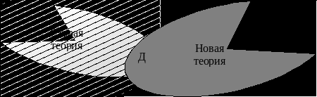 Область Д представляет проблемы и факты старой теории, о которых все еще помнят и которые искажены так, чтобы их можно было включить в новую структуру.