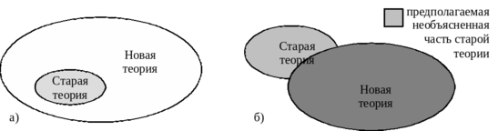 При сравнении старой теории с новой отношение их эмпирических содержаний обычно представляется в одном из следующих видов: