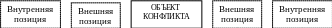 В структуре конфликта также выделяют внутреннюю и внешнюю позицию участников.