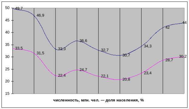 Принимая во внимание, что заработная плата является основным источником доходов большинства россиян и составляет две трети структуры доходов всего населения, вполне естественно, что ситуация, сложившаяся на рынке труда, оказала доминирующее влияние на масштабы распространения бедности в период экономических преобразований.