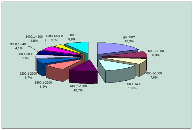 *Величина прожиточного минимума для трудоспособного населения во втором квартале 2000 г. составляла 1290 руб., в среднем за 2000 г. – 1320 руб.