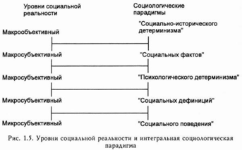 Значение этой модели в том, что она позволяет, во-первых, установить реальные взаимосвязи между различными уровнями социальной реальности (рис. 1.5), во-вторых, служит основанием классификации изучаемых явлений, в-третьих, требует применения соответствующей этим явлениям методики и техники.[1,с. 87]
