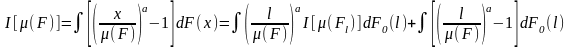 Далее, наряду с уже введенным обозначением J(w,n), будем использовать новое - J(F) (J(F,n)), где F вероятностная мера множества w. Более того, для простоты, F - функция распределения) доходов, так как последняя показывает и величину дохода (точка роста) и численность людей получающих эти доходы (величина скачка в точке роста, умноженная на n) в обществе F и Fi в его группе i.