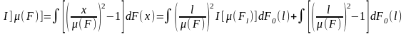 Для квадрата коэффициента вариации функция w(x)=[x/(F)]2-1, весовая функция p[(Fl)]=[l/(F)]2 и
