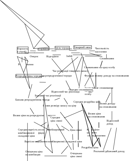 Рис. 1. Скорочена діаграма причинно-наслідкових зв’язків модифікованої автором імітаційної моделі ринку свинини.