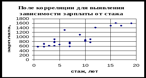 Можно видеть, что в целом для всей совокупности увеличение стажа приводит к увеличению заработной платы, т.е. связь – прямая, хотя в отдельных случаях наличие такой связи не усматривается.
