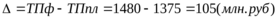 Абсолютный прирост составил 105 млн. руб. к плану.