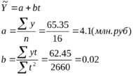 | Год | Квартал | Производство продукции, млн. руб. ( y) | t | yt | t2 | |