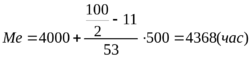 Медианный интервал определяем по накопительной частоте, 50-е значение находится в интервале 4000-4500