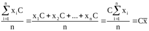 если каждое индивидуальное значение признака умножить или разделить на одно и тоже постоянное число, то среднее увеличится или уменьшится во столько же раз.