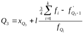 - накопленные частоты интервалов предшествующих интервалов содержащих 1 и 3 квартили.