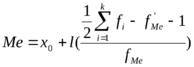 Медианный интервал – первый интервал накопленная частота которого превышает половину от общей суммы частот.