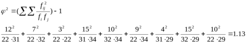 При наличии не двух, а более возможных значений каждого из взаимосвязанных признаков рассчитываются следующие коэффициенты: