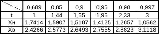 1. Определить границы доверительного интервала для единичного результата измерения по формуле