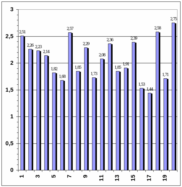 Неравенства являются верными, следовательно, в данной выборке (N=20) нет величин, содержащих грубую погрешность